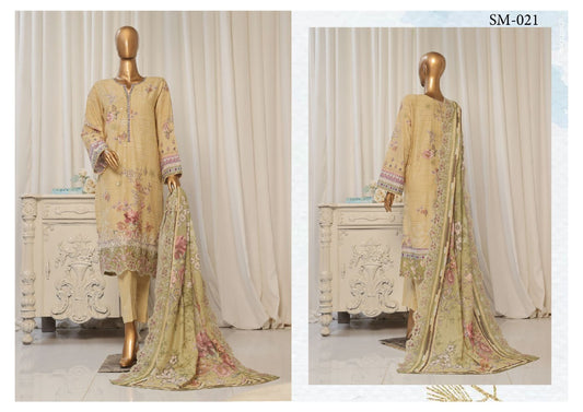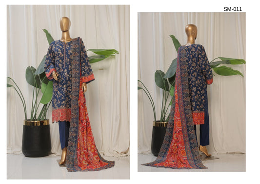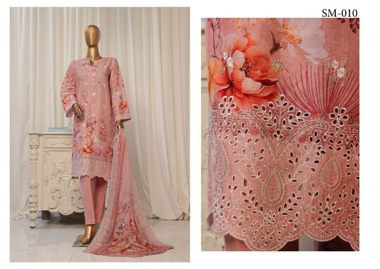 Premium 3-Piece Embroidered Lawn Dress with Stylish Dupatta