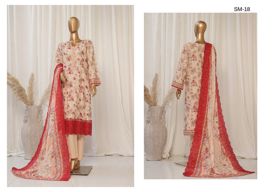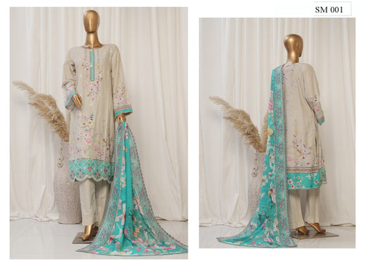 Luxury Lawn Embroidered Suit – 3-Piece Set with Dupatta